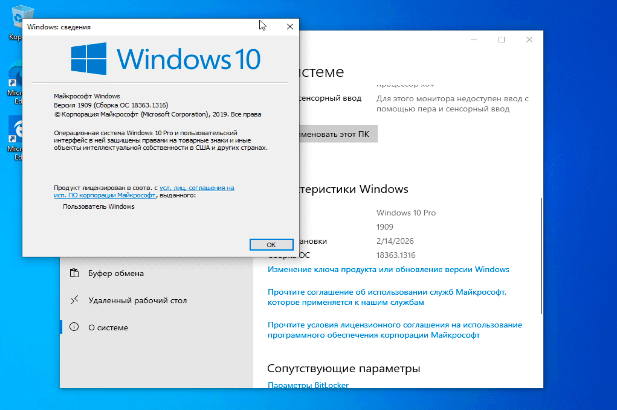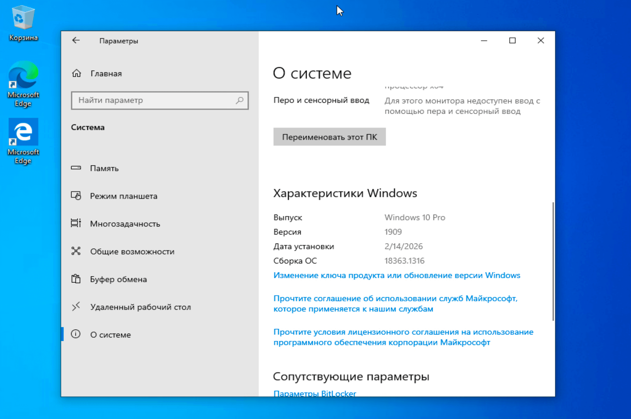 В общем случае сегодня разумнее ориентироваться на более современную систему (Windows 11 26H1 или хотя бы свежую Windows 10 22H2), а 1909 - это вариант для «ретро‑железа» и узких задач.