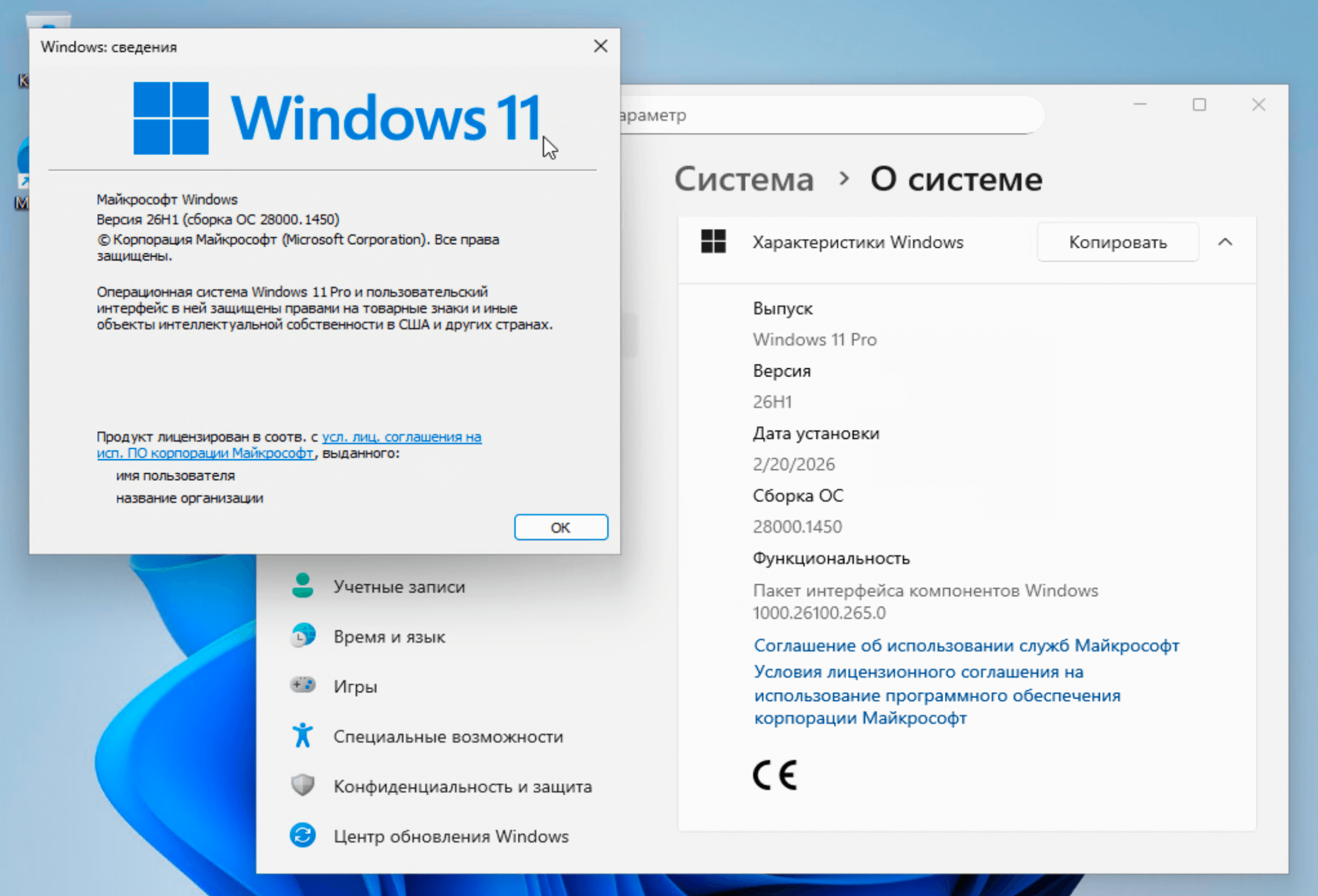 Сборка 28000.1450 относится к ветке 26H1: она развивает ядро Windows 11 после ветки 25H2 (26200), содержит свежие патчи безопасности и оптимизации под новое железо.